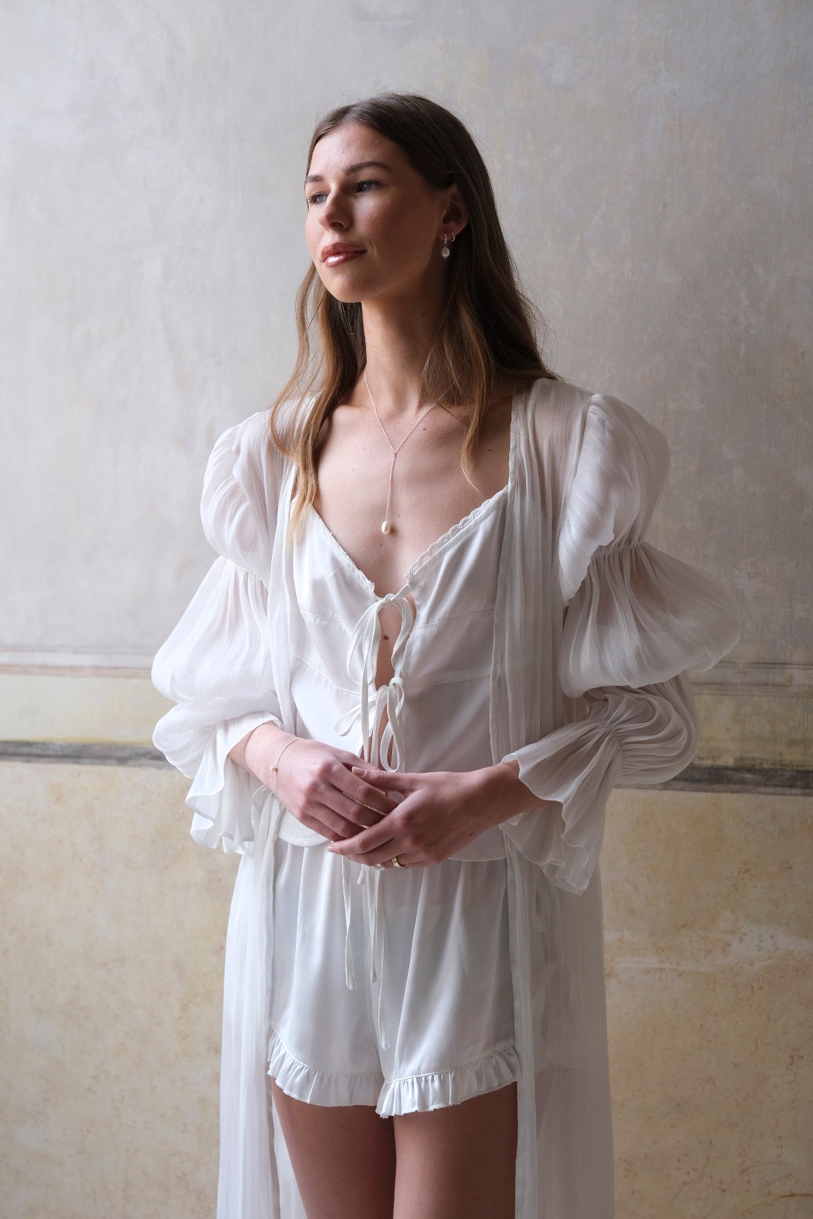 Chiara Feather Silk Satin Robe - White