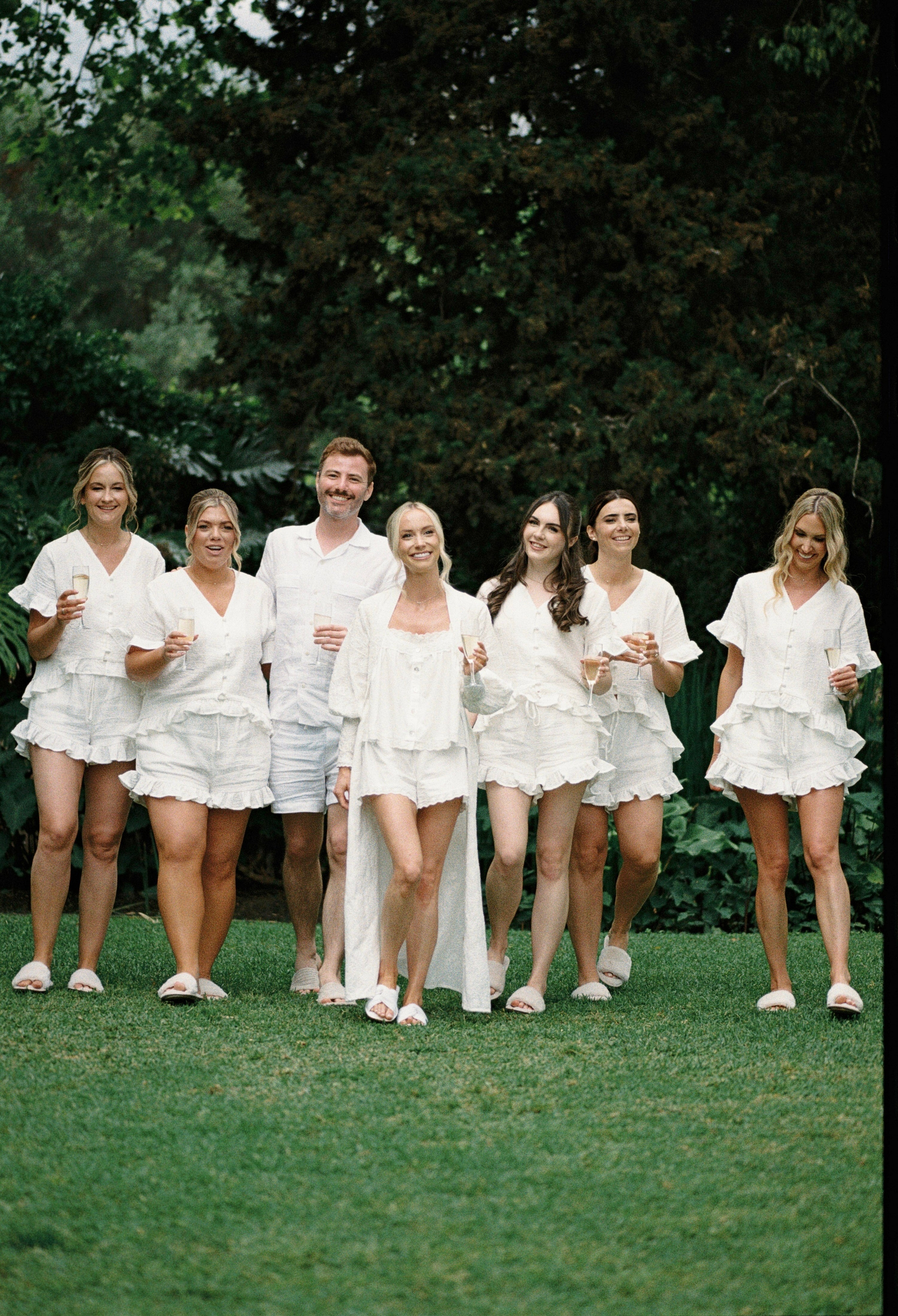 The Remi shorts is made from 100% Organic cotton that has a soft bubble texture. The abundant frills make it romantic and flirty - Perfect for your wedding morning and many more years after that.