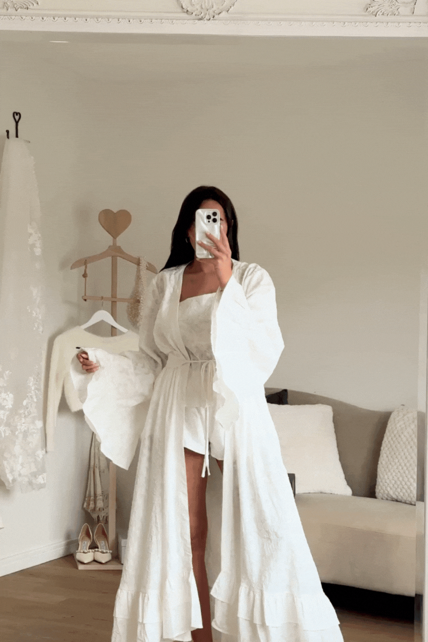 Isabella Frill Wrap Over Bridal Robe - Ivory White